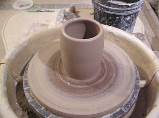 By nature I am a mud potter: throwing, shaping, stamping, slip decorating, all the things that happen while the clay is wet are easily appealing to me. Like a lot of ceramic artists, for years I thought of glazing and firing as just something I had to do to finish the things l loved to make. I tried to choose (or create) glazes that would enhance my shapes and textures, but could be applied with simple dipping or pouring. That has been changing in the last few years, and I feel like my work has taken great strides forward - come to a new level, if I may say so - since I have been treating glazing as just as active and creative a process as wetwork. I want to see if planning out some glaze designs in advance will further develop that aspect of the work.