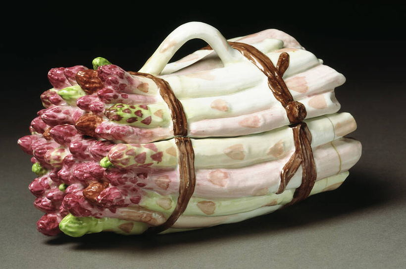 In fashionable households in 18th century France, it was common to see serving dishes made to appear like whatever they were meant to serve: asparagus soup in a tureen shaped like a bundle of asparagus; chicken casserole in a hen-shaped vessel.